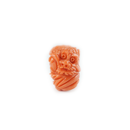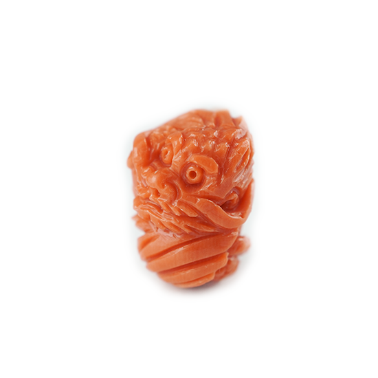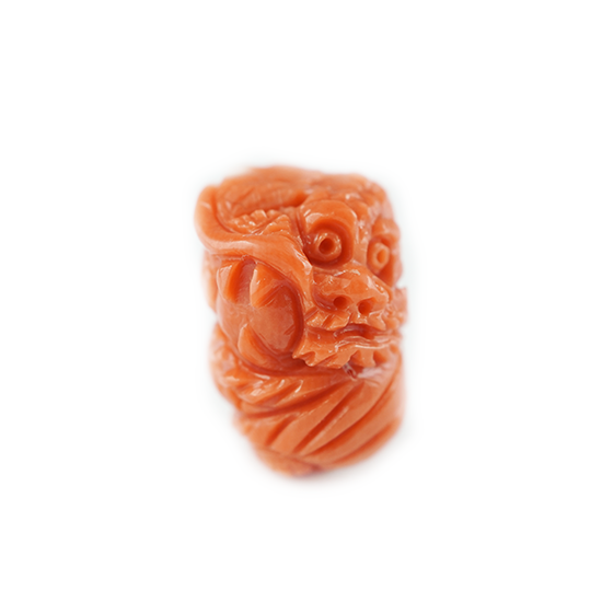 上質な桃珊瑚を使った、龍の彫り物になります。